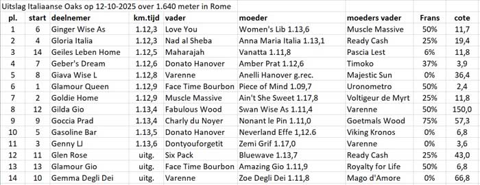 De deelnemers aan de Italiaanse Derby Oaks (3-jarige merries) van dit jaar hebben we