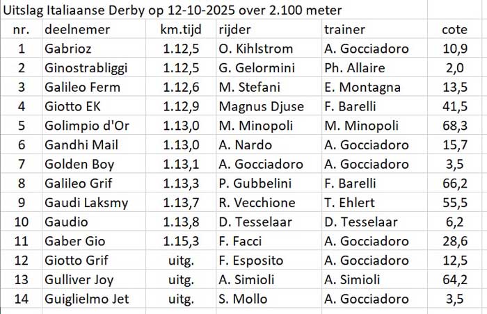 Trainer Gocciadoro had 6 deelnemende paarden in de koers en hij reed zelf Golden Boy (à 3,5).