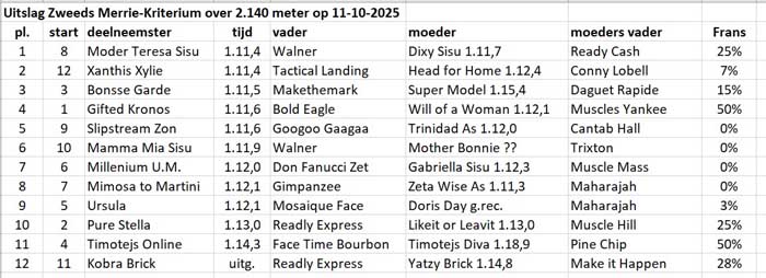 Maar wel 4 paarden met pacer-bloed (25%): nrs. 7, 8, 10 en 12