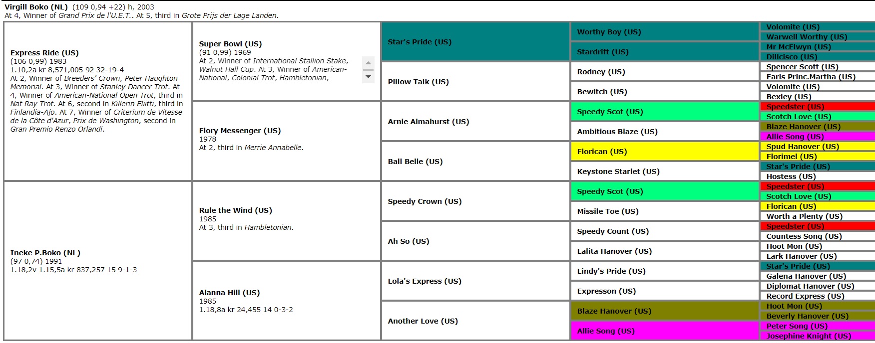 Hij komt uit de succesformule van Express Ride keer Ineke P Boko, die meerdere Derbywinnaars afleverde. Naast Virgill wonnen