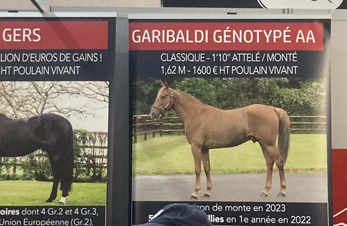 waarop reclame wordt gemaakt voor de dekhengst Garibaldi met zijn genotype AA.