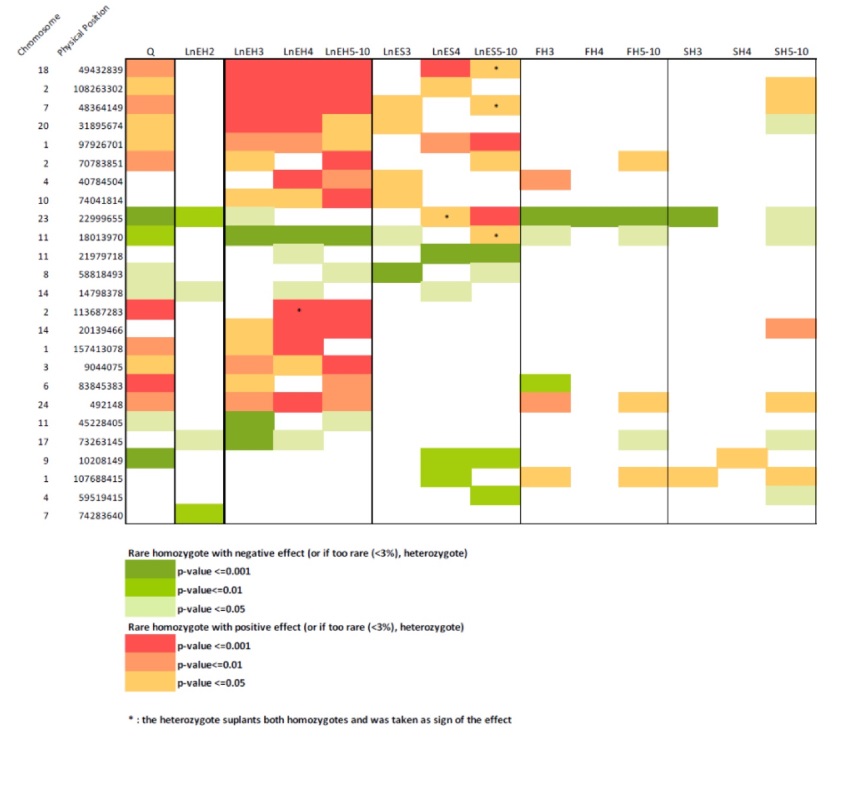 Rood = zeldzame homozygote met positieve effecten op de eigenschap
