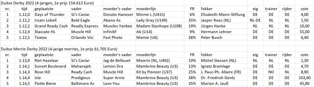 In het weekend van 19 en 21 aug. 2022 werden de Duitse Derby en Merrie-Derby voor 4-jarigen verreden.