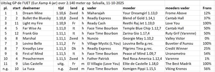 De uitslagen van de 3 series (2x op Solvalla en 1x Vincennes)