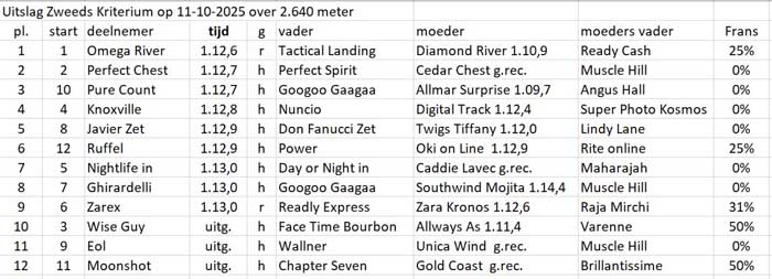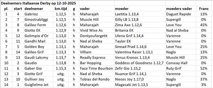 Maar wel 4 paarden met pacer-bloed (25%): nrs. 7, 8, 10 en 12