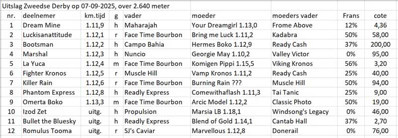 Net als in de Zweedse Derby heeft Dream Mine nummer 1 gekregen.