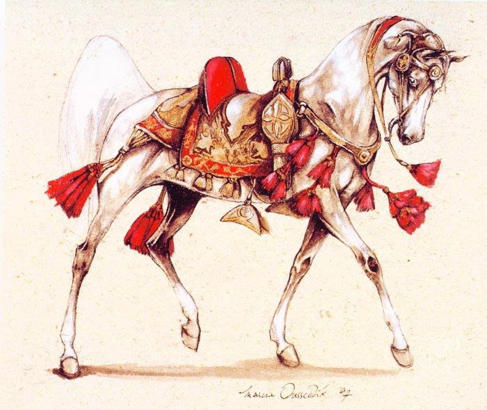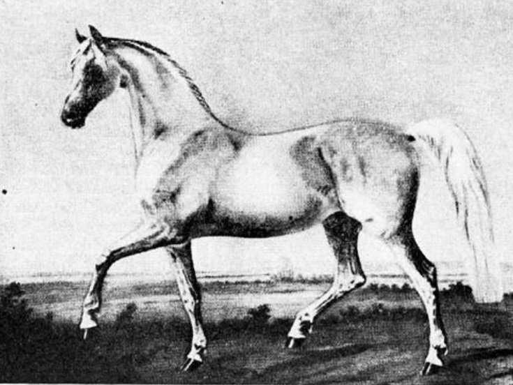 Het Russische Orloff-draverras begint eveneens met een Arabische Volbloed: de schimmelhengst Smetanka, die geboren is