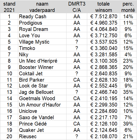 DMRT3-onderzoek: tabel 3 hengsten met genotype AA