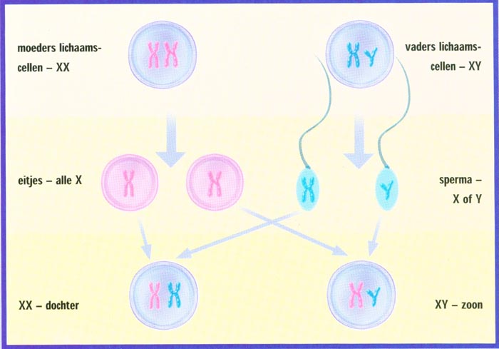 Boven: Het geslacht wordt bepaald door de zaadcellen.