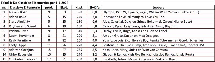 Zij had de pech dat 3 producten net niet aan de winsomgrens van € 5.550 kwamen en daardoor geen punt voor hun moeder verdienden, anders was ze al Elitemerrie geweest. Nu met de KB-winsom erbij is dat wel gelukt en anders was het een kwestie van tijd geweest, denken we. Kelsa en Levi Europoort starten ook nog op de langebaan.