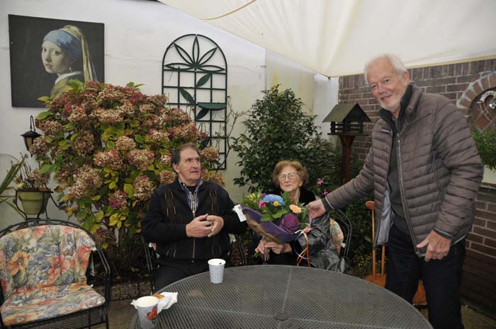 Boven: Huiberts mocht de bloemen overhandigen aan mevr. Krijnen.