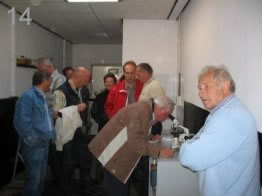 westen bijvoegden. Na de ontvangst met koffie en cake, werden we rondgeleid door de "spreekstalmeester" (foto´s 1 & 2), kapper