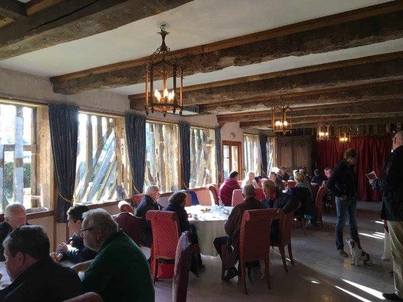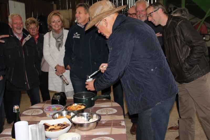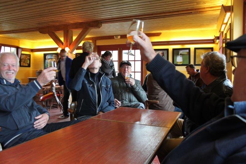 Boven: Binnen werden we getracteerd op koffie, gebak en drank (Calvados)