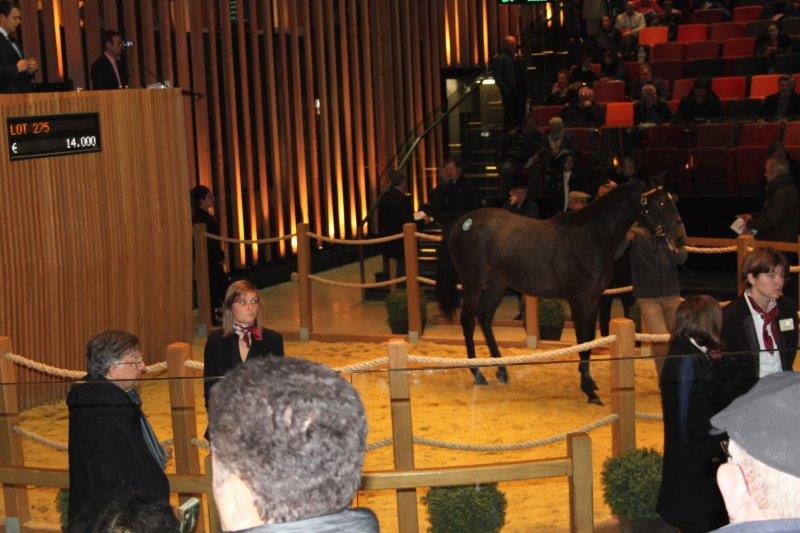 Boven: Veiling van Volbloed-jaarlingen met hoge prijzen.