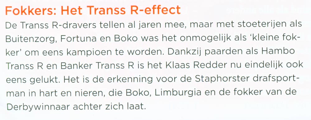In hetzelfde blad staat een foto van Belina Josselyn en haar Ready Cash-veulen. Die foto hebben we onderaan in haar Fokkersoog-artikel geplaatst. Click HIER