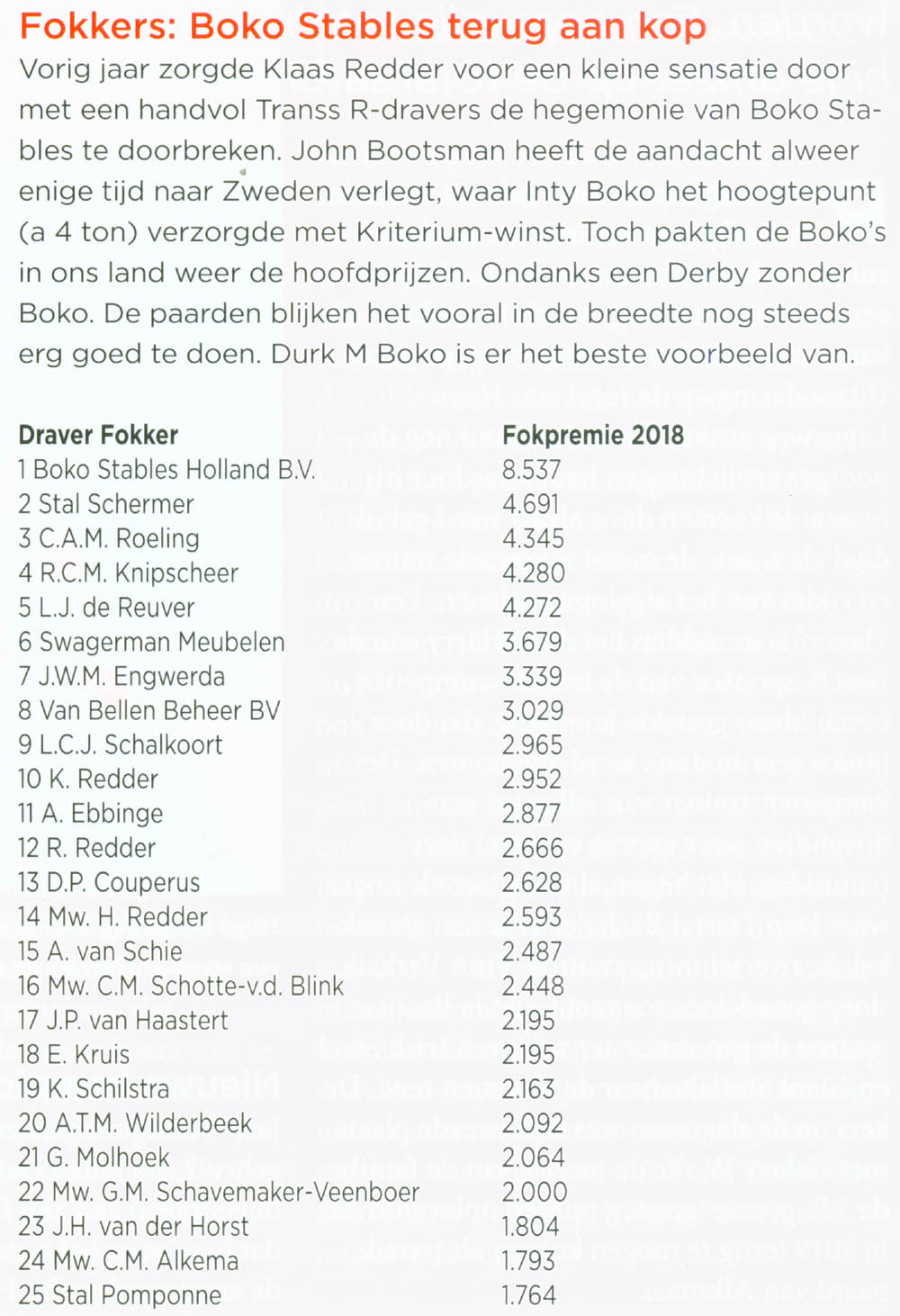 Bij de fokkers werd BOKO-stables voor de tiende keer kampioen, met als tweede