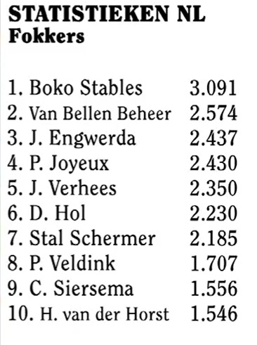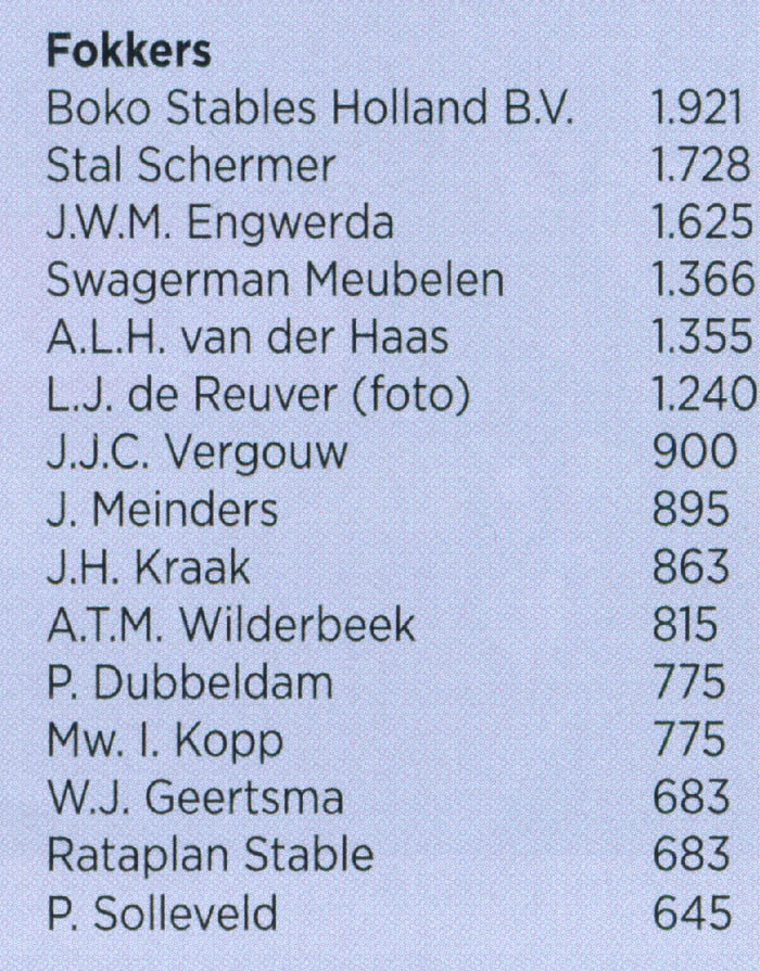 - Kampioen-Fokker 2006: J. Bootsman Boko-Stables (voor de 10e keer!)